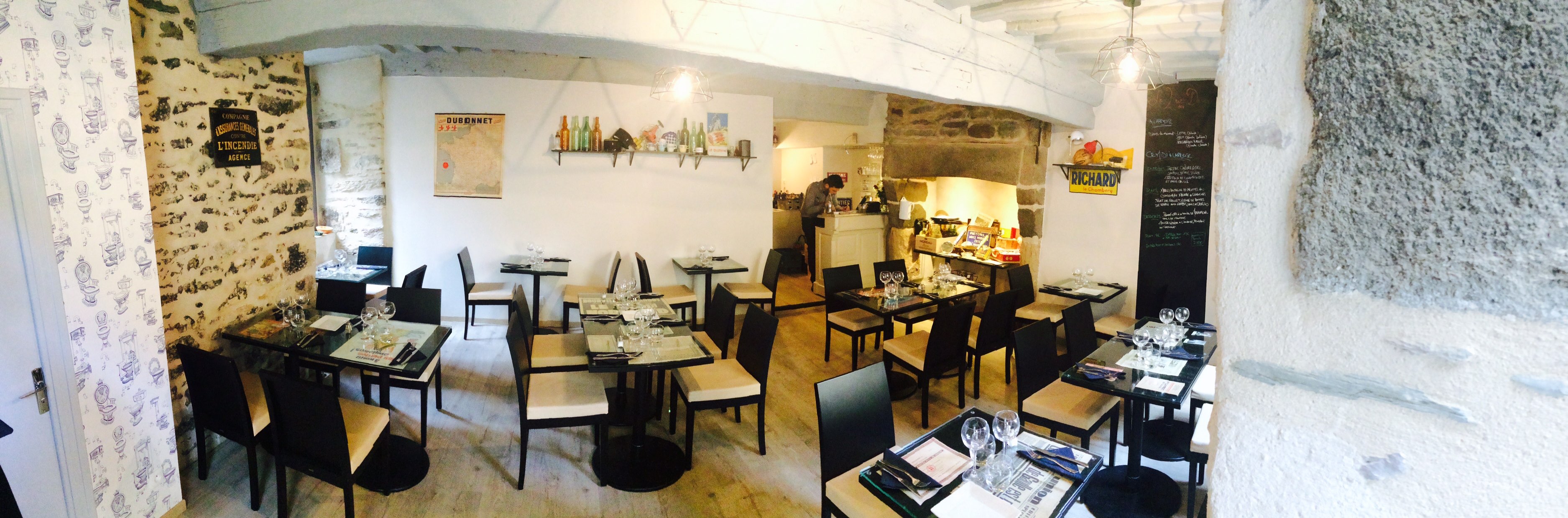La salle est petite (30 couverts), très historique, avec vieux plafond et cheminée en pierre, et bien décorée avec des affiches et des cartes diverses, chinée dans les brocantes. Les politiques de la 5e répulique – enfin plutôt leurs affiches électorales – sont remisées au WC. Le service est assuré par Julien Moreau, ancien chroniqueur judiciaire pour divers titres, notamment le Parisien, le Télégramme et le Courrier de la Mayenne ; tous deux ont ouvert leur restaurant en février 2016. Son frère Gabriel – formé à l’école des métiers de Saint-Méen le Grand, à l’école des métiers de Ker Lann et aux fourneaux de l’Amiral et du Baron Rouge à Rennes – officie seul en cuisine de 8h à 23h, faisant tous ses plats à la minute, inventant ses recettes au fur et au mesure de ses approvisionnements aux Lices et de la saison.