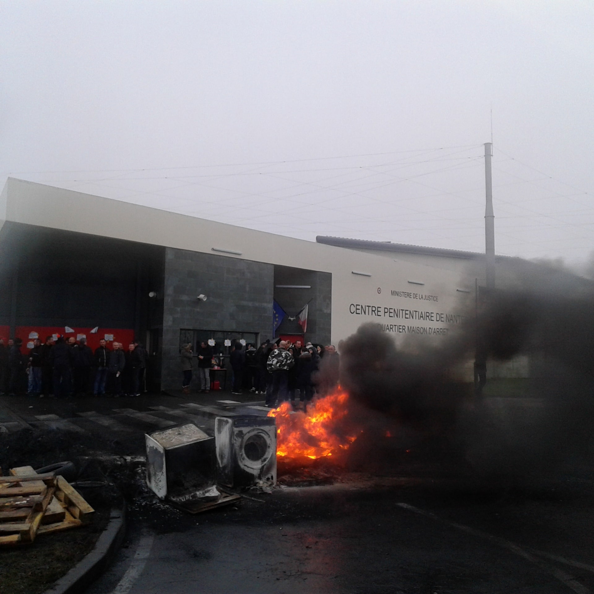 Mardi matin nous étions encore avec les surveillants qui manifestaient devant l’entrée de la maison d’arrêt de Nantes. Nous avons recueilli le témoignage d’une surveillante, qui travaille depuis plusieurs années : « à la base, mon métier est d’appliquer une décision de justice privative de liberté. A la place je me retrouve à gérer des collègues qui se retrouvent sur des civières, à gérer des collègues en contact avec des séropositifs, des maladies de pays sous-développés comme la gale, les punaises de lit, la lèpre ». Elle s’oppose à la « banalisation de la violence contre les surveillants, de la drogue en prison. Rien n’est normal ».
