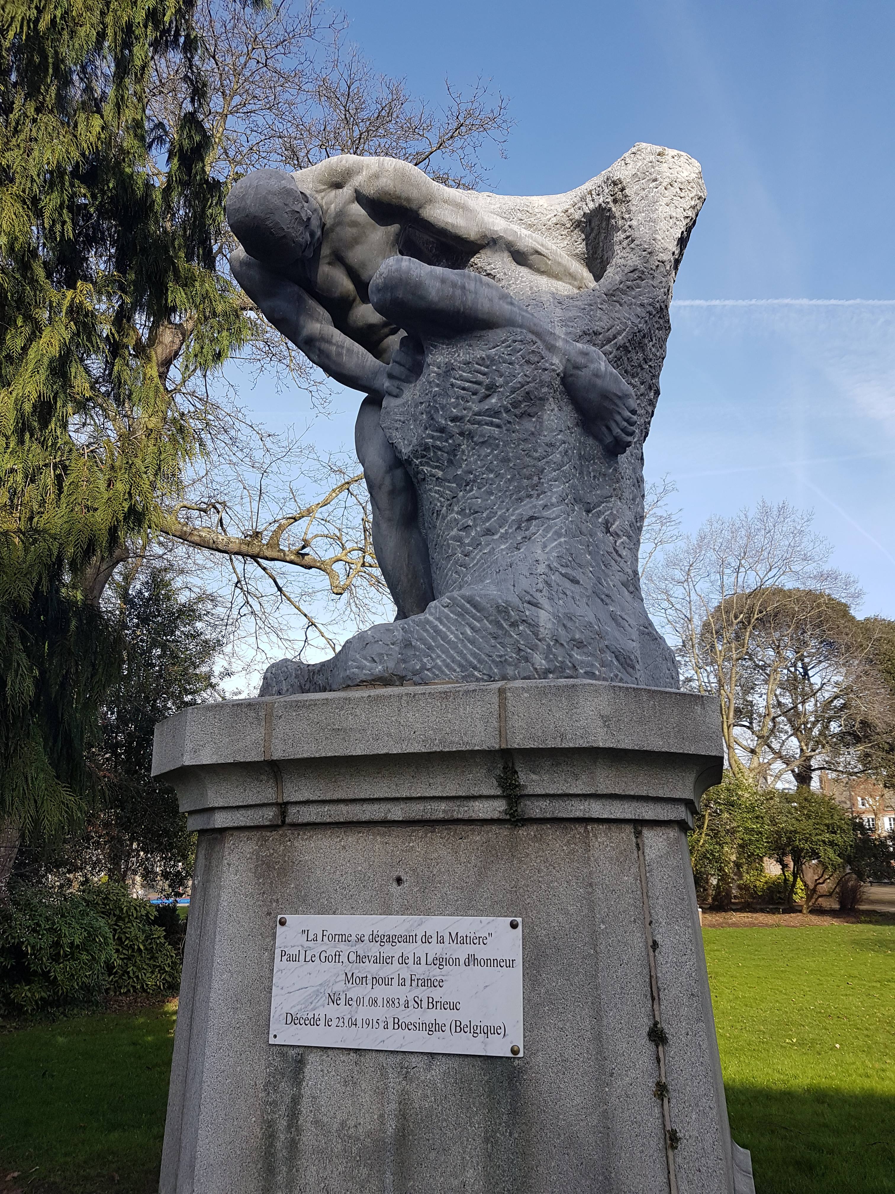 Une autre sculpture en granit dans ce même parc, cette fois-ci l’œuvre de l’artiste Le Bozec et inaugurée par le Président de la République en 1938, est justement un hommage à Paul Le Goff.