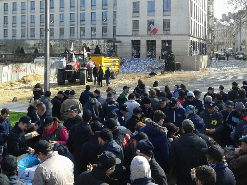 « Nous on produit en se pliant à des normes, conformément aux attentes des consommateurs », nous explique un agriculteur. « Là, on fait introduire sur le marché des produits qui ne répondent pas aux normes françaises, et qui contiennent 36 substances ou produits dangereux ». Joël, producteur lait et viande dans le pays de Blain, renchérit : « déjà qu’on ne se sort pas de la crise du lait [qui s’est muée cet automne en pénurie de beurre] mais en plus ils vont tirer nos prix à la baisse. Eux vont s’en sortir, pas nous ».