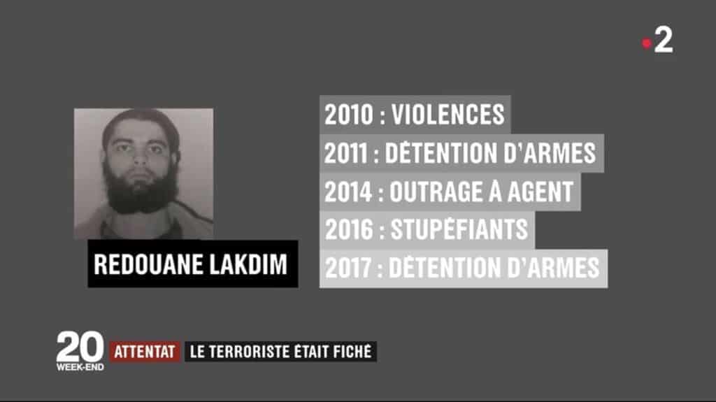 - Le 14 juillet 2017, à Nice, Mohamed Lahouaiej-Bouhlel, un Tunisien domicilié à Nice et disposant d’une carte de Résident attribuée par l’administration, conduit un camion poids lourd sur la promenade sur près de deux kilomètres, prenant pour cible une foule de civils, à l’issue du feu d’artifice donné pour la fête nationale. L’attaque cause la mort de 86 personnes et fait 458 blessés.