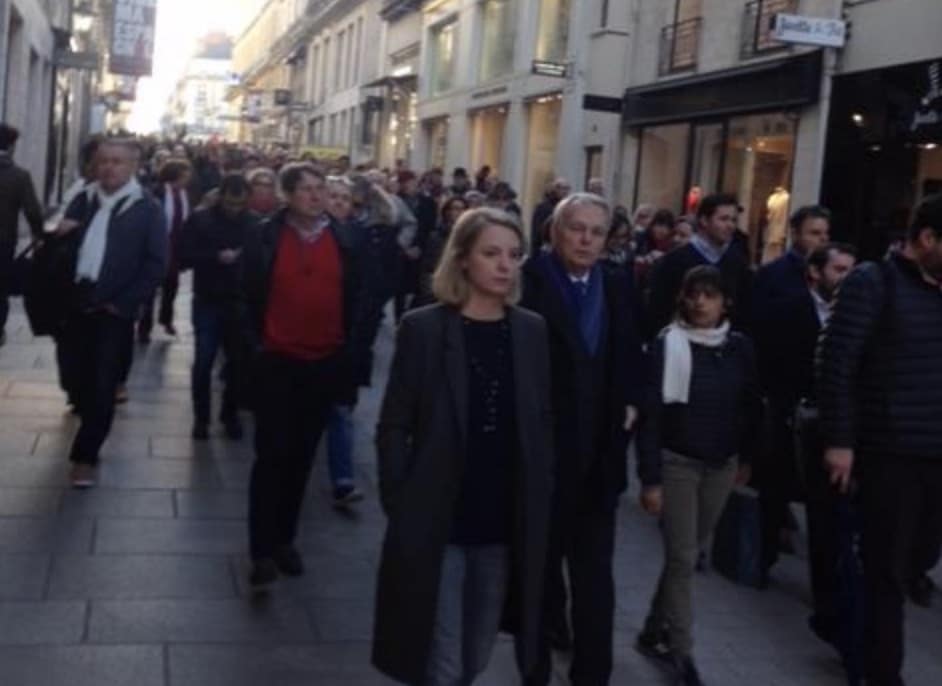 On se serait cru revenu au bon vieux temps. C’est en effet l’ancien maire de Nantes, Jean-Marc Ayrault qui a défilé ce mercredi en tête de la marche blanche pour Mireille Knoll, de la place Graslin à la place Royale. Quant à Johanna Rolland, la maire actuelle, elle brillait par son absence. Deux cent personnes ont défilé en rangs serrés, sans bannières ni drapeau – sauf pour les militants de Sud Solidaires, qui ont peut être loupé la mini-manif des étudiants un peu plus tôt dans la journée.