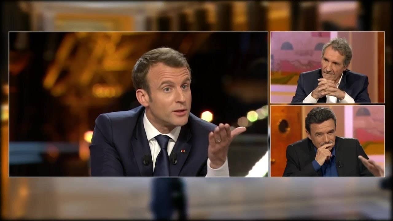 Emmanuel Macron a répondu aux questions d’Edwy Plenel (Mediapart) et de Jean-Jacques Bourdin (BFM-TV) dimanche 15 avril, en direct du Palais de Chaillot à Paris.