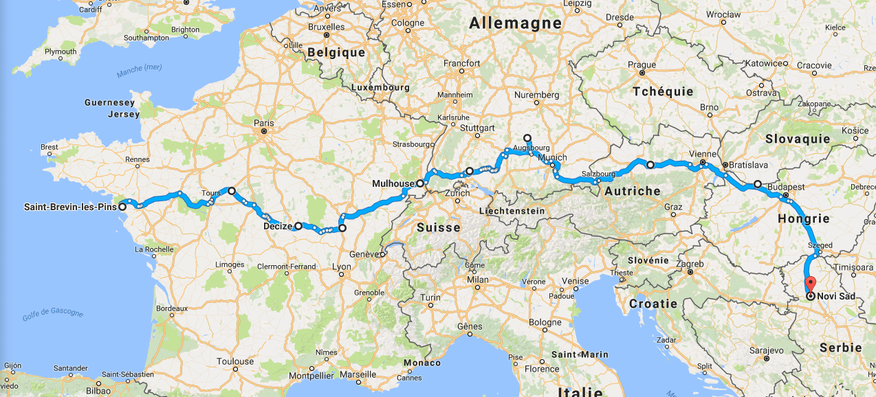 - Serbie : Apatin, Novi Sad, Belgrade (EV11), Pančevo