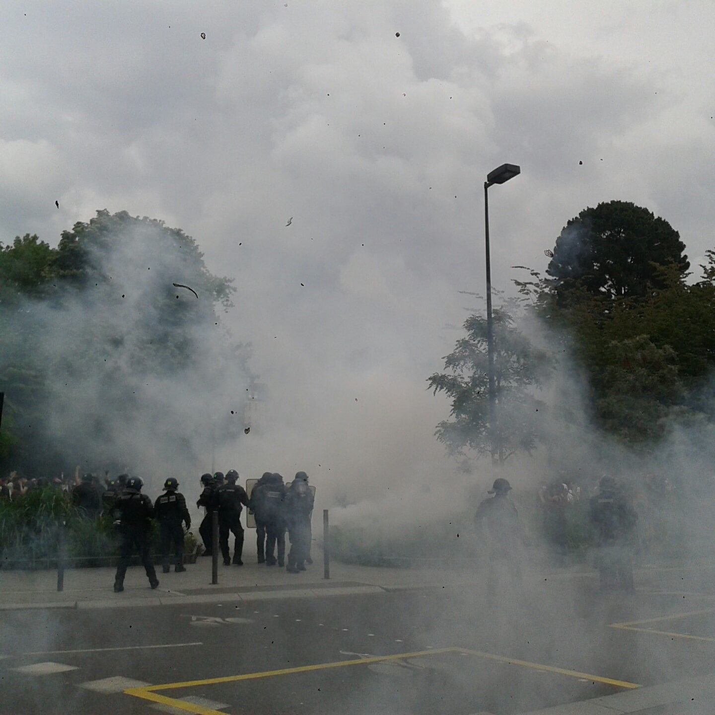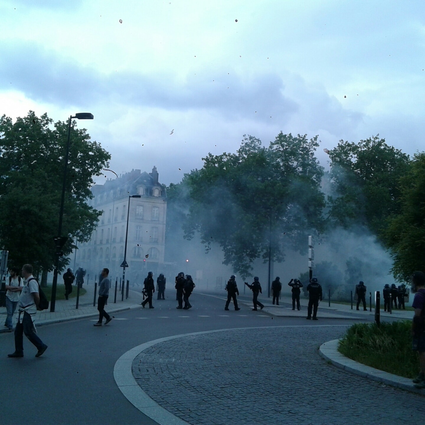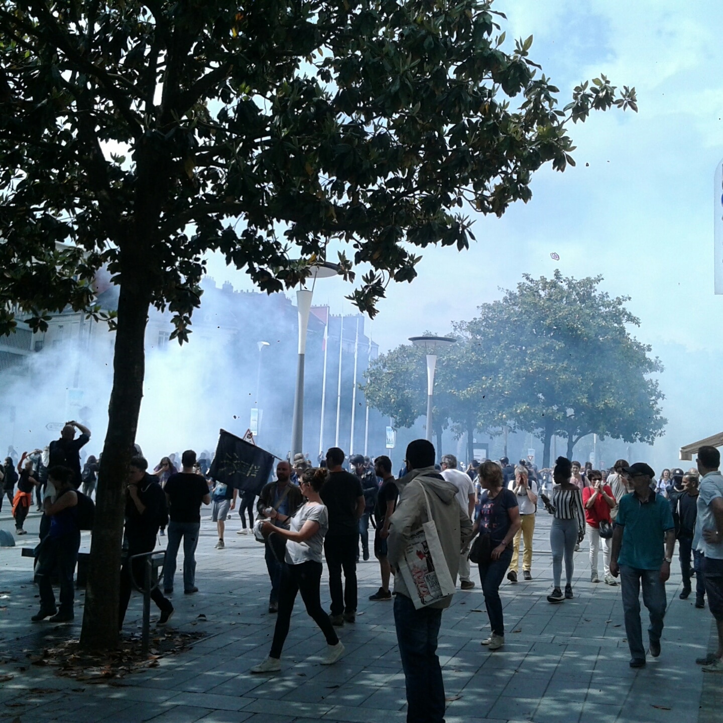 D’autres éclats ont eu lieu rue de l’Hôtel de Ville – où un manifestant qui filmait les casseurs avec son portable a été molesté par sept personnes et son portable jeté violemment à terre ; cependant l’intervention rapide de la BAC a empêché les agresseurs de poursuivre. Puis devant le château, lorsque certains manifestants ont essayé d’aller au CHU comme ils l’avaient annoncé. Les forces de l’ordre ont fait usage de gaz lacrymogène et ont bloqué les velléités des manifestants, qui ont fini par se disperser à partir de 17h30. Quelques uns avaient cependant réussi à s’introduire sur les voies SNCF tout près. Trois personnes ont été arrêtées, une pour port d’arme prohibé, une pour outrage, une dernière par les CRS face au château pour jet de projectile.