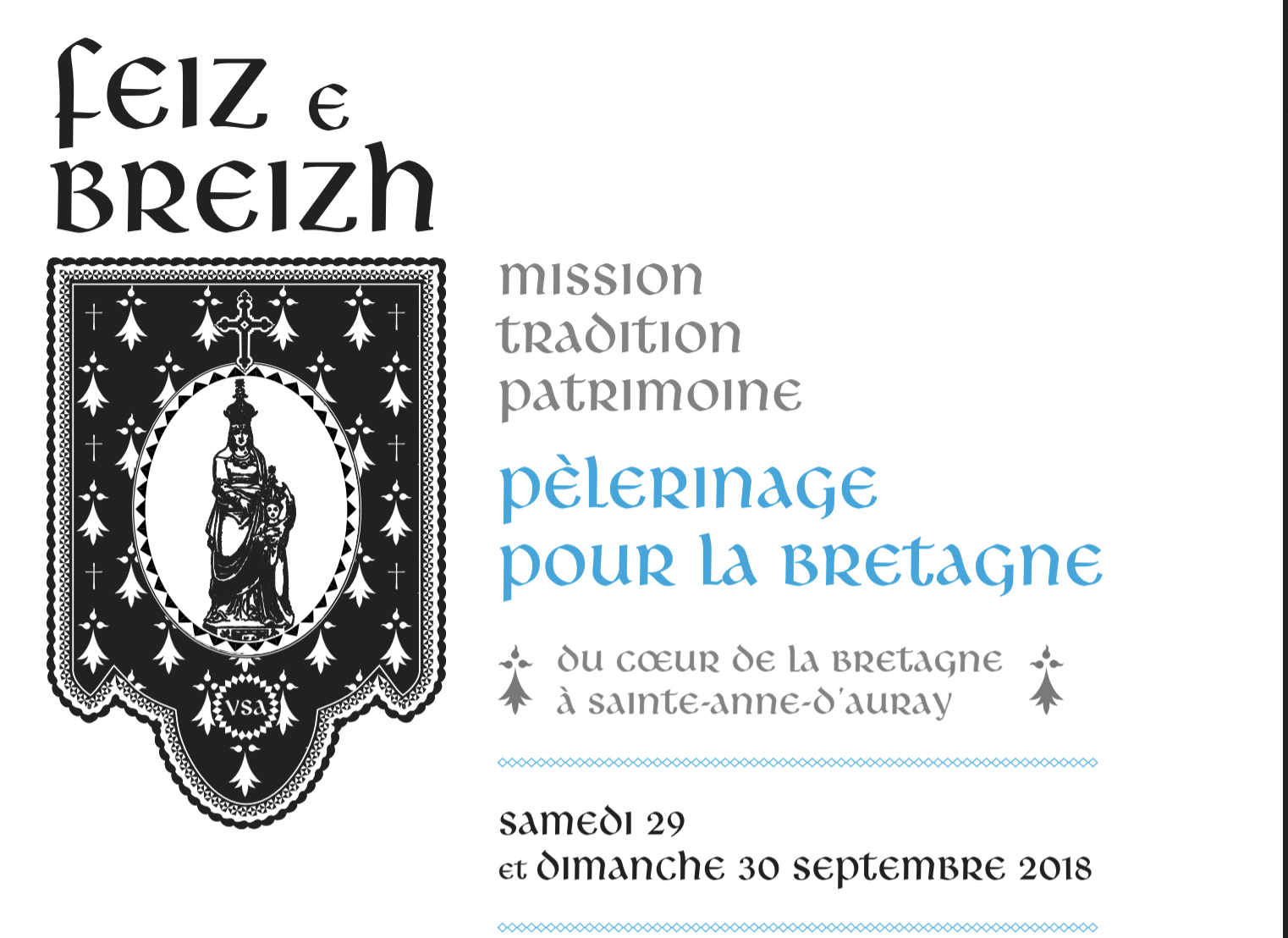 L’association Feiz e Breizh (Foi en Bretagne) organise un « Pèlerinage pour la Bretagne » vers Sainte-Anne-d’Auray : deux jours de marche ouverts à tous les 29 et 30 septembre 2018.