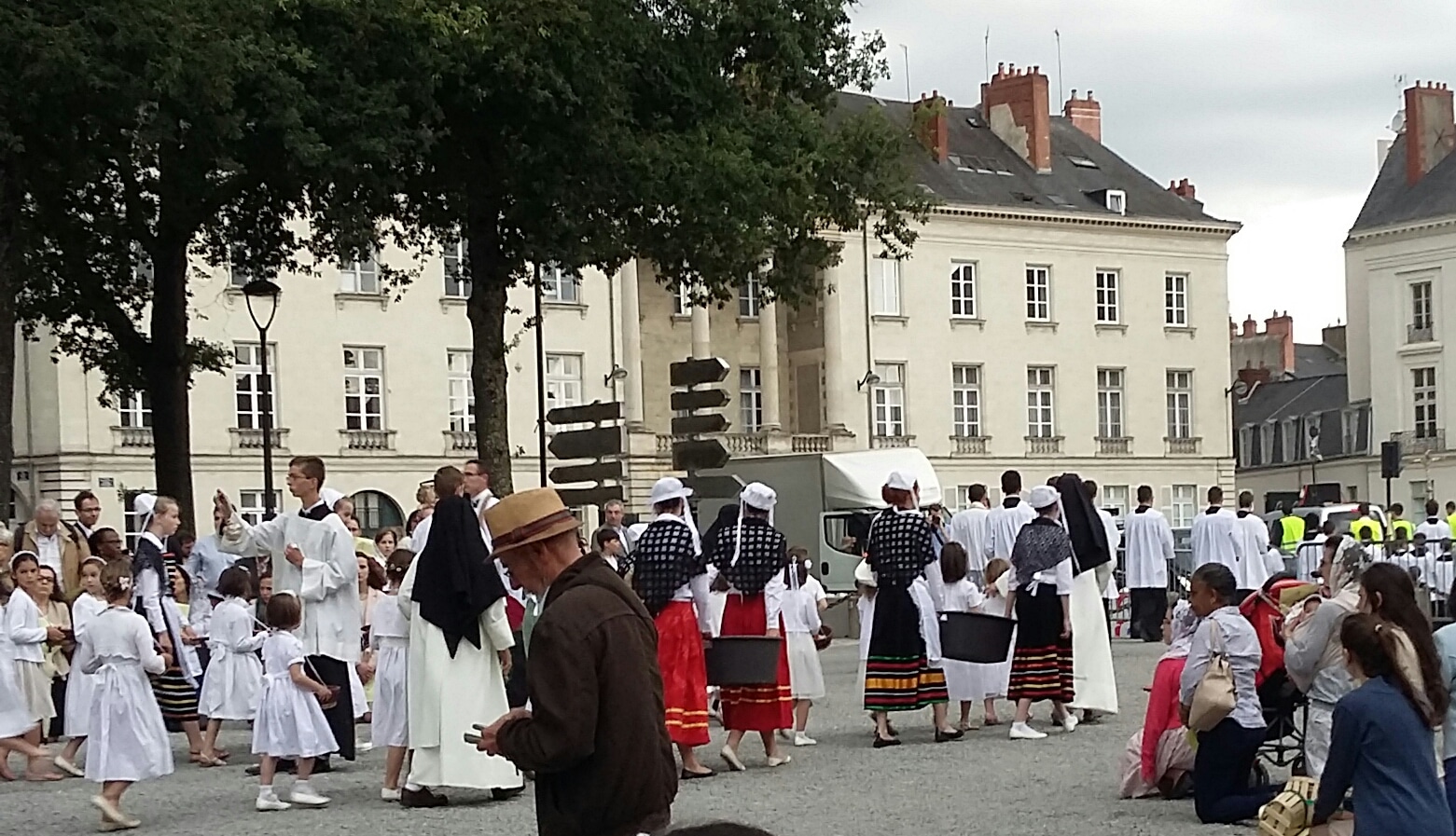 Pour le diocèse, c’est la FSSP (Fraternité Sacerdotale Saint-Pierre), desservant l’église Saint-Clément, qui organisait une procession le 31 mai – jour même de la fête. Du côté du diocèse, on n’a « pas connaissance » d’autres processions organisées dans un cadre paroissial. A Sait-Gildas des Bois, « le temps n’a pas permis de faire une procession », nous répond-on au presbytère, « mais nous avons célébré les vêpres et le Salut au Saint-Sacrement ». Cette paroisse dont le titulaire, Mickaël Brétéché, serait le seul curé diocésain à porter la soutane, organise d’ailleurs un pardon breton assez connu dans les environs, qui aura lieu le dimanche 1er juillet cette année.