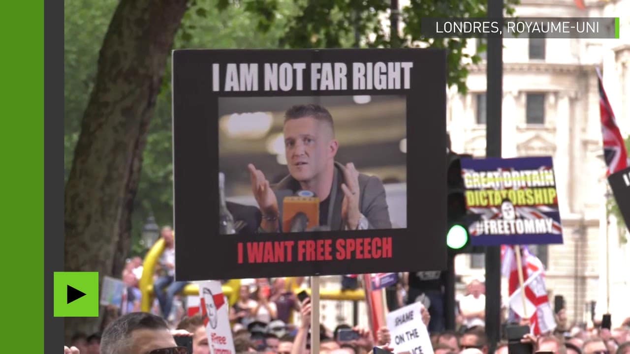 Cinq policiers ont été blessés alors que des milliers de personnes s’étaient rassemblées. Les manifestants ont bloqué l’une des rues principales près de Trafalgar Square dans le centre de la capitale, scandant «Libérez Tommy Robinson !» et lançant des fumigènes en direction de la police.