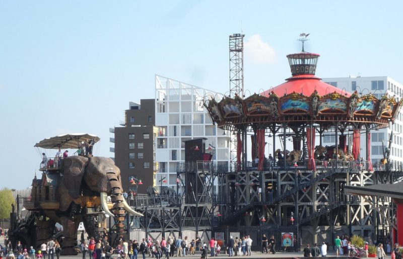 Les Machines de l’île ? Un immense éléphant mécanique, une « galerie des machines » et un manège à trois plateaux, le Carrousel des fonds marins, édifiés par Nantes Métropole moyennant une vingtaine de millions d’euros afin de développer son activité touristique (et peut-être pas sans arrière-pensée politique). Ces équipements sont installés à proximité du centre-ville sur 13 hectares de terrain en bord de Loire, là où se situaient autrefois les chantiers navals.