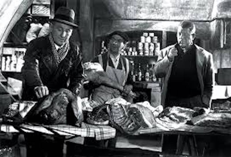 Mais je ne déteste pas cette promenade nocturne dans le Paris de ma jeunesse où les flics sont encore des « zirondelles » à bicyclette, où la torpeur du couvre-feu mêle, dans un sinistre bistrot, à deux pas de la rue Poliveau (où Gabin vitupère l’impérissable Jambier), une jolie brochette de clients… où les patrouilles allemandes font sonner le pavé tandis que hurlent les loups excités par le cochon porté par ces deux héros de la majorité silencieuse : le peintre Grandgil et Martin, le taximan au chômage.