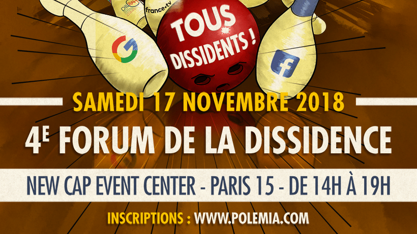 Le 4ème forum de la dissidence se déroulera le 17 novembre à Paris (billetterie ici) de 14h à 19h.