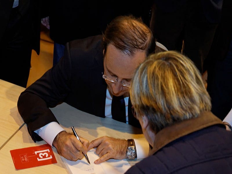 Une précision technique pour terminer. Lorsqu’elle signe chez Coiffard, Amélie Nothomb a droit à une bouteille de champagne à portée de main. À ses lecteurs qui se pressent pour la dédicace, elle n’hésite pas à l’avouer : « Je suis alcoolique ». » D’où la bonne question : Hollande aura-t-il droit lui aussi à une bouteille de champagne ?