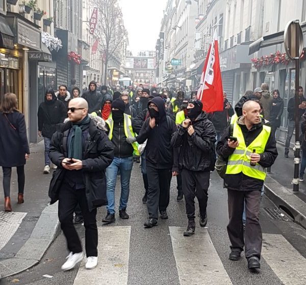 Paris, quartier des Grands magasins, samedi 1er novembre vers 14 heures : des militants d’extrême gauche se mêlent aux Gilets jaunes… ©Breizh-info.com