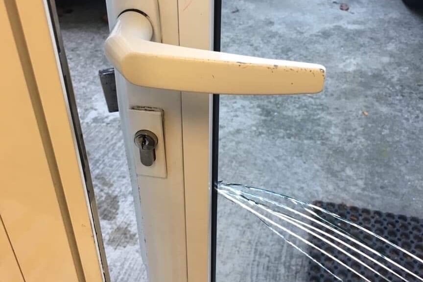 Un petit Malin (ou des petits malins) a forcé la porte de notre refuge à coups de pied de biche à 6 bonnes reprises… Petit Malin est rentré et a fait sonner l’alarme à détecteur de mouvements. Petit Malin s’est enfui…