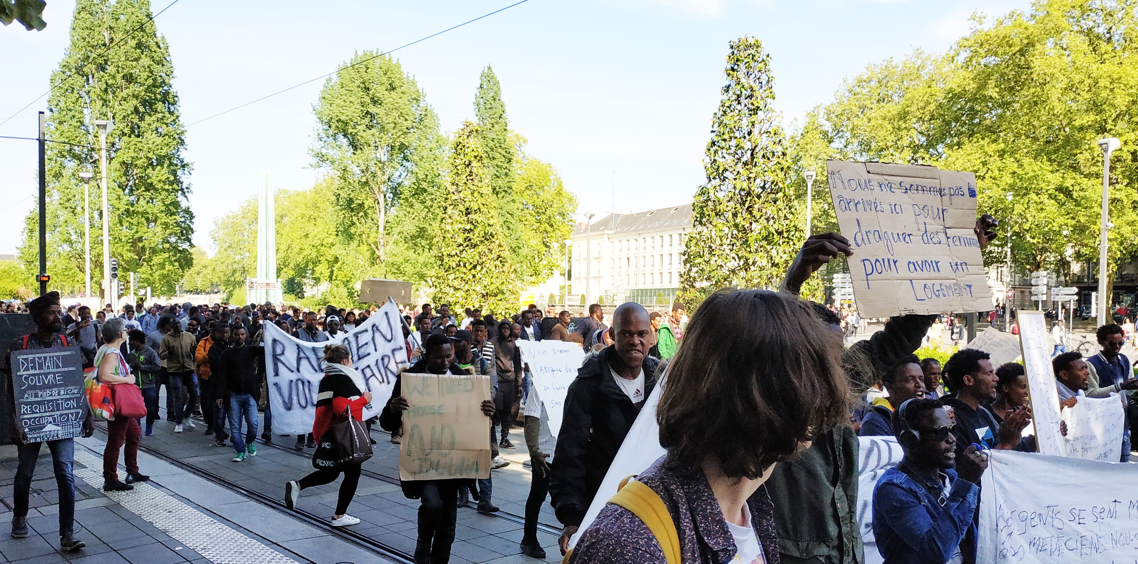 Environ 200 migrants, discrètement encadrés par quelques membres d’associations, ont manifesté à Nantes dans l’après-midi du 30 avril. Ils venaient du gymnase Jeanne-Bernard, à Saint-Herblain. L’établissement est squatté depuis la fin de l’été dernier. Sur demande de son propriétaire, le Diocèse de Nantes, ils ont été condamnés à l’évacuer au plus tard le 9 juin. Et ils réclament un logement de remplacement.