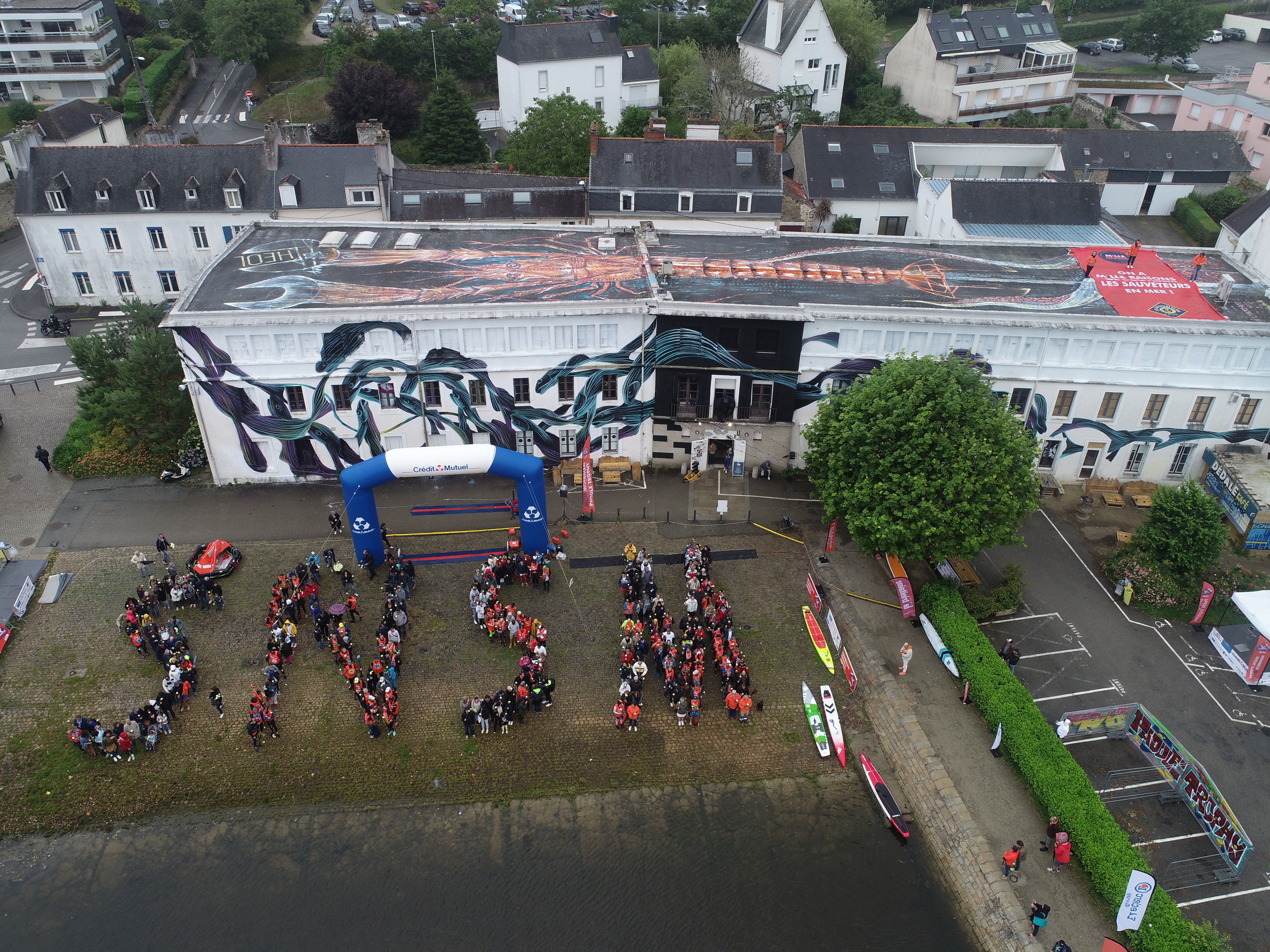 L’émotion fut grande, sur les coups de 17h30, ce samedi dans le port de Vannes, au moment où les paddleurs du SNSM Morbihan Paddle Trophy se sont réunis sur la cale du Dédale, pour former une fresque humaine et dessiner au sol les lettres SNSM. Vue du ciel, l’image est à la hauteur de l’engagement quotidien et du dévouement extrême des Sauveteurs en Mer, durement touchés par la disparition de trois de leurs camarades, la semaine dernière, au cours d’une opération de secours aux Sables-d’Olonne, en pleine tempête.
