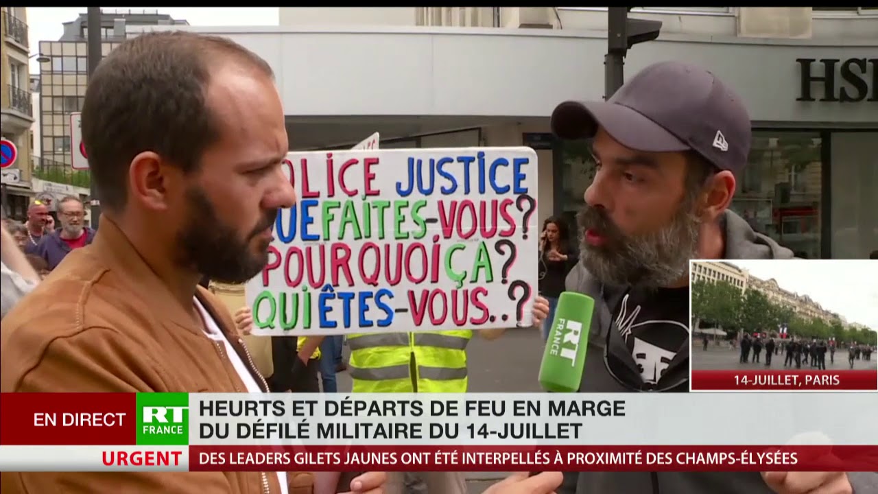 Maxime Nicolle, Jérôme Rodrogues, Eric Drouet et d’autres figures emblématiques du mouvement des Gilets jaunes ont été arrêtés lors du 14 Juillet, en marge du défilé. Malgré l’interdiction de manifester, des Gilets jaunes se sont rassemblés, notamment sur les Champs-Élysées à Paris, où des heurts ont éclaté.