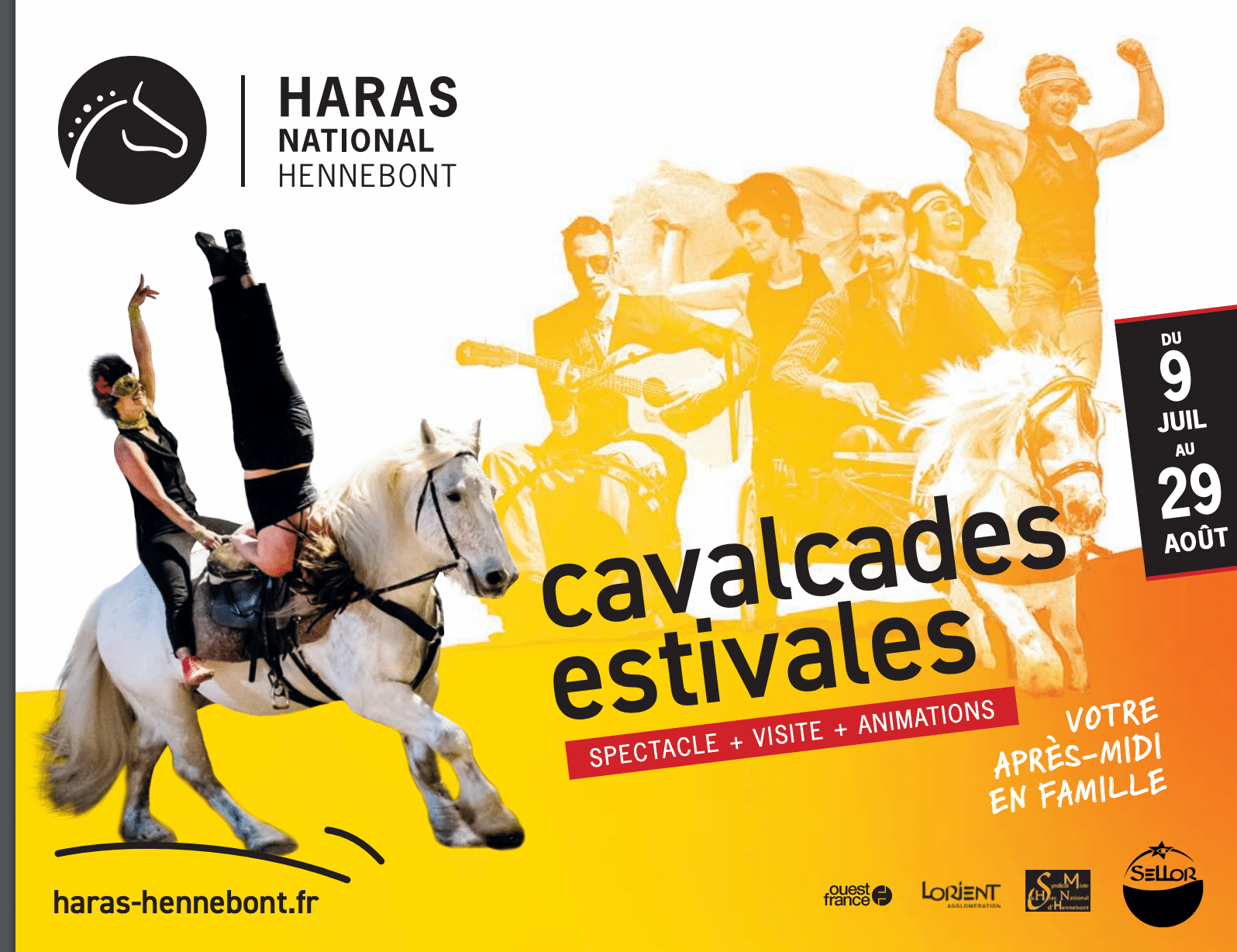 Cet été le Haras National d’Hennebont met à l’honneur, à l’intention des familles et des publics de tous âges, les liens qui unissent hommes et chevaux dans toutes leurs dimensions. Visites guidées du fief du cheval breton, voltige sous chapiteau et initiation pour les plus jeunes : de 5 à 85 ans, faites galoper votre imagination.