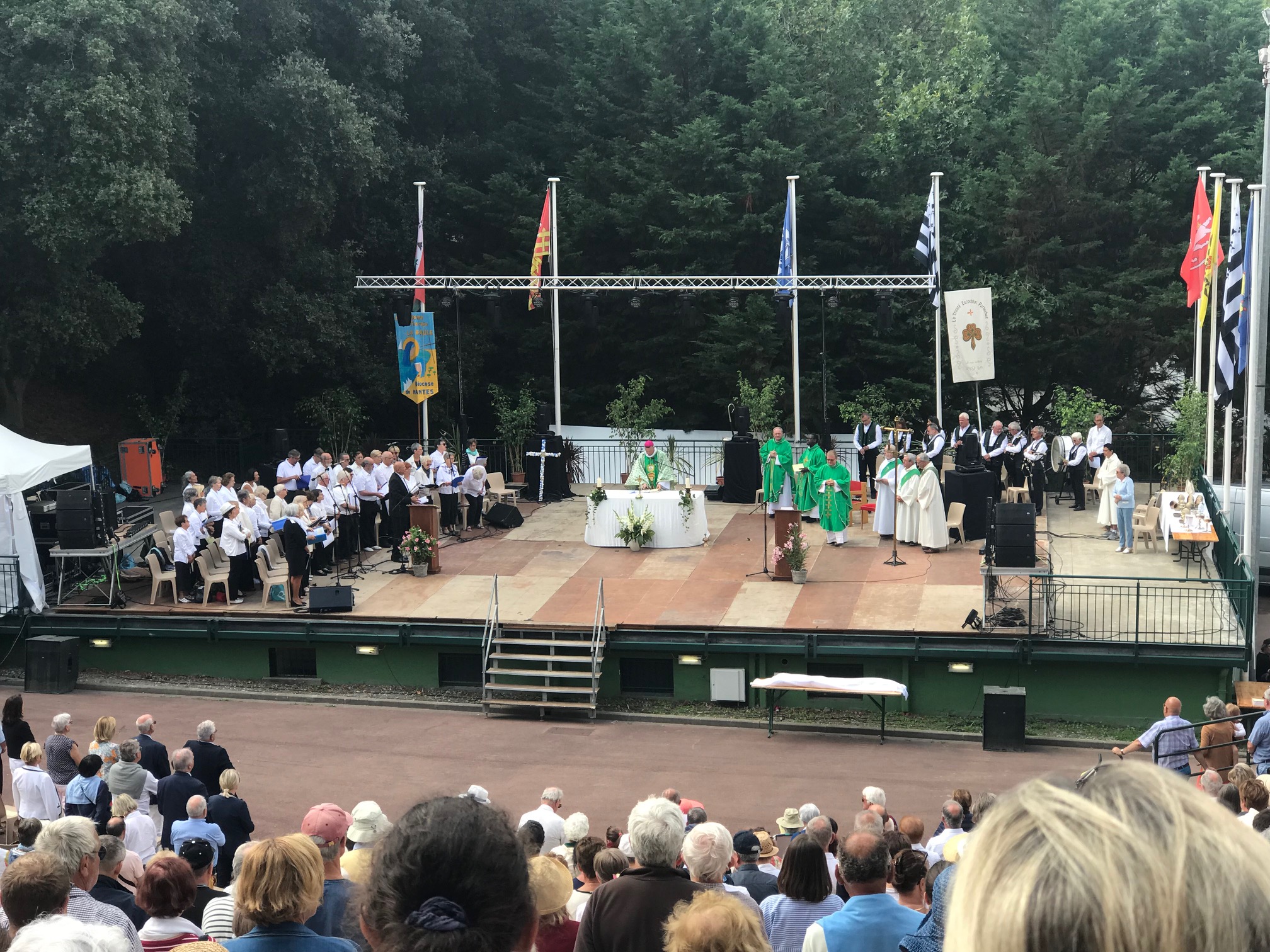 Enfin, dimanche couronnait ce pardon. Le matin, cela débuta par la grande messe au parc des Dryades qui se termina par l’Angélus breton et le cantique  » Sainte Anne, ô bonne mère « .