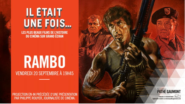 Il était une fois… Rambo sera l’occasion de (re)voir l’un des plus grands films d’action du cinéma sur grand écran et d’en comprendre son succès. Bien plus qu’une projection, ce rendez-vous offrira aussi un éclairage complet sur le film et les coulisses du tournage grâce à la présentation filmée de Philippe Rouyer. Cinéphile passionné, journaliste de la revue « Positif » et chroniqueur dans l’émission Le Cercle sur Canal +, il présentera cette séance et partagera, avec les spectateurs, ses éléments de réflexion, ses analyses cinématographiques et ses anecdotes indispensables pour approfondir la (re)découverte de ce film renversant.