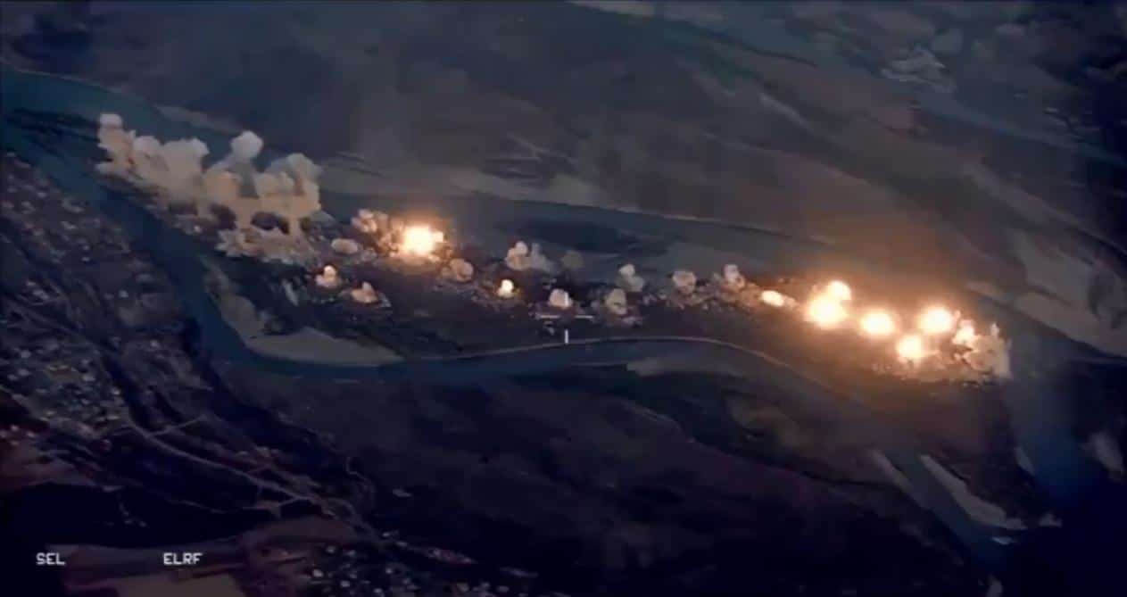 VIDEO: Here’s what it looks like when @USAFCENT #F15 and #F35 jets drop 36,000 Kg of bombs on a Daesh infested island. 🛩💥 هكذا تبدوا الجزيرة الموبوءة بداعش بعد أن أسقطت عليها الطائرات المقاتلة #أف-15 و #أف-35 36,000 كغم من الذخيرة pic.twitter.com/2v6FAEL9Rn