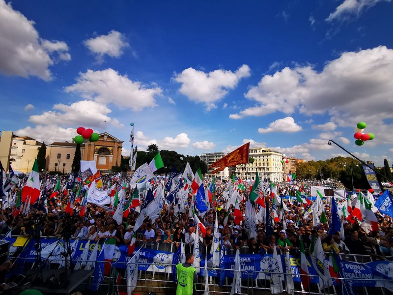 C’est donc devant une place noire de monde se prolongeant dans les rues alentour, et une foule très enthousiaste que « le centre-droit a pu exprimer de nouveau l’unité qui lui manquait depuis longtemps », comme le souligne Andrea Carriero – en effet, la dernière manifestation du centre-droit remonte à 2015, soit bien avant les élections de 2018 pour lesquelles ils n’ont rien fait – et sa volonté de faire un gouvernement qui puissent « redonner au pays sa grandeur et sa fierté nationale ». Ils ont voulu rassembler l’Italie qui travaille, qui produit et qui perpétue le savoir-faire national. L’objectif exprimé par les trois leaders est de protéger l’identité et la culture italienne pour le bien-être des citoyens et du pays dans l’optique de relancer l’économie et de retrouver une dignité et un « orgueil national ». Un orgueil national que les manifestants soutiennent en montrant bien haut leur drapeaux tricolores.