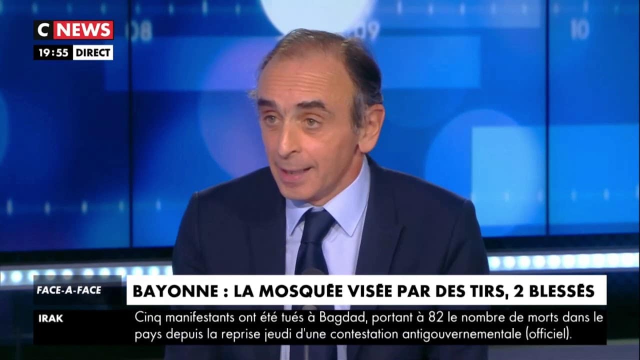 Eric Zemmour s’exprime sur les tirs à la mosquée de Bayonne. Extrait tiré de l’émission « Face à l’Info » (CNews) du 28 octobre 2019.