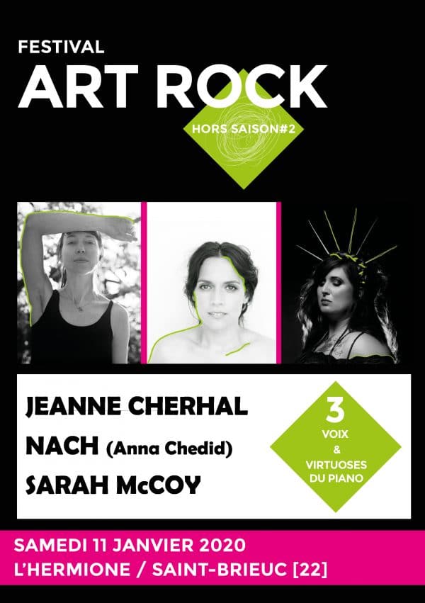 Après le succès de sa première édition en novembre 2018, Art Rock Hors Saison revient, en partenariat avec le Palais des Congrès et des Expositions de la Baie de Saint-Brieuc, pour un deuxième épisode dédié au piano. Et si, au-delà de l’apparente rigueur de cet instrument en noir et blanc, pouvait poindre une soirée de chaleur, au cœur de l’hiver briochin ? Avec 3 façons d’aborder l’instrument, 3 voix et 3 fortes personnalités féminines, le programme s’annonce haut en couleurs !