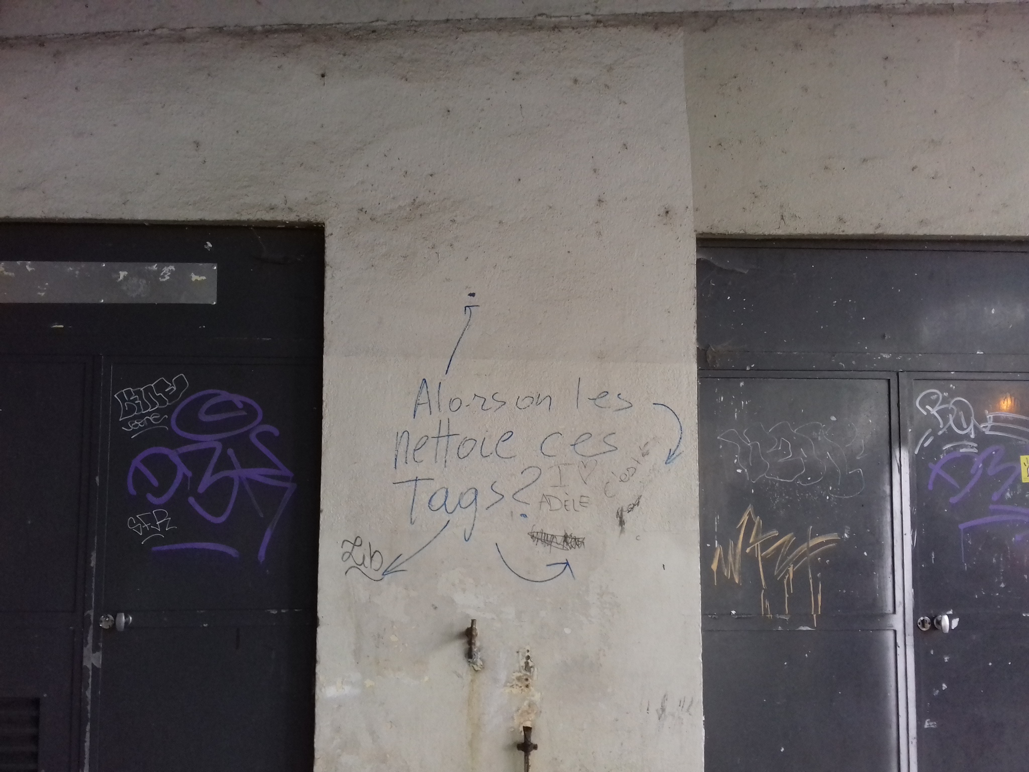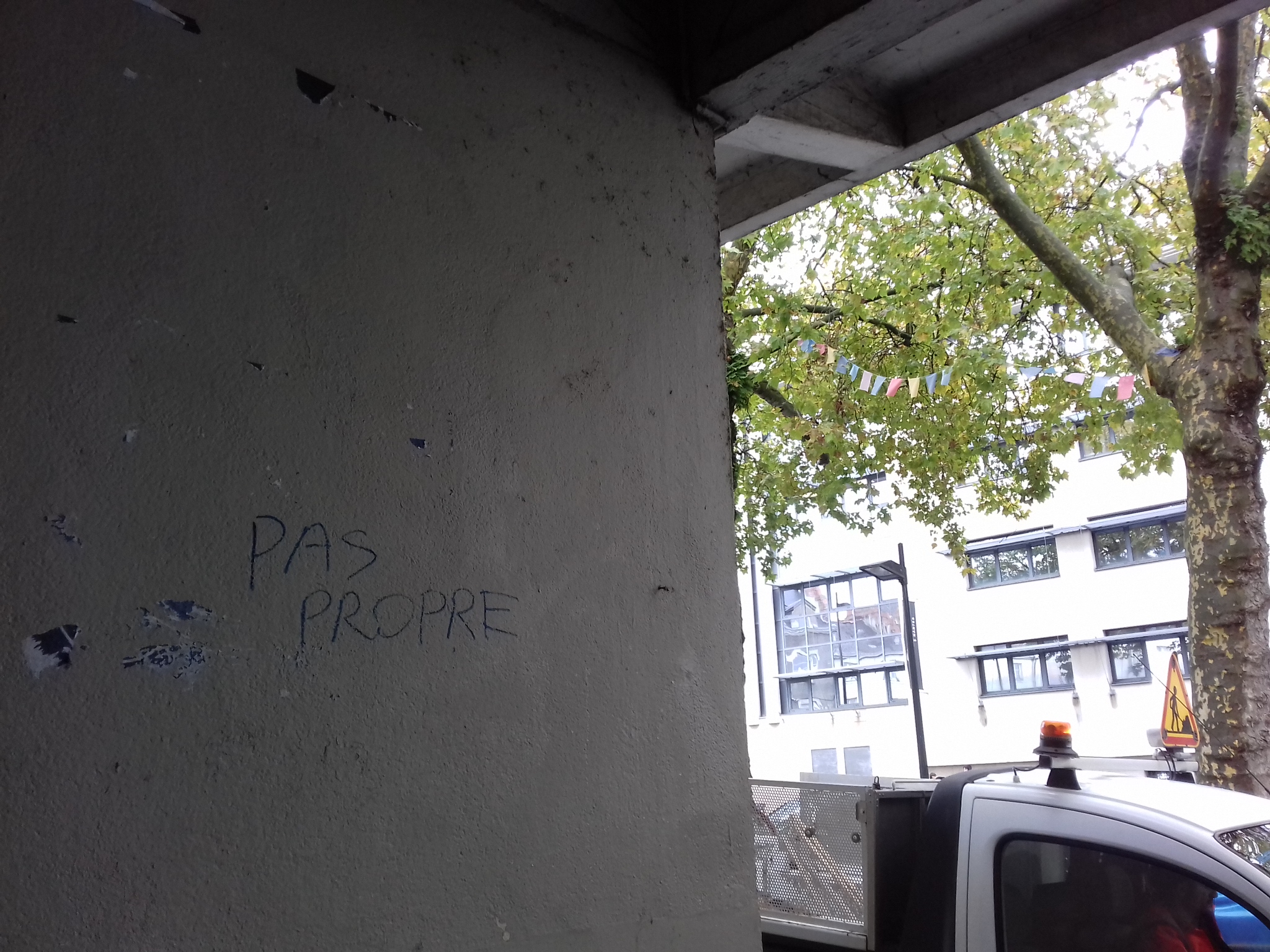 Les riverains de Talensac l’ont remarqué : seuls sont nettoyés les terre-pleins, mais pas les rues avoisinantes, qui gardent leurs tapis de feuilles. Quant aux commerçants, ils constatent des lacunes évidentes dans le nettoyage sous les auvents. « Quand on s’installe, il peut y avoir de la pisse, de la gerbe, de la saleté, des tags. Ce n’est pas ragoûtant ». De facto, les murs de Talensac n’ont pas été nettoyés depuis longtemps – si bien qu’un tag, en haut de l’auvent du côté du lycée de Talensac, indique même d’autres tags à nettoyer (!) et ce depuis des semaines. Pis : l’état du plafond d’où pendent des toiles d’araignées et divers fils. Idem dans le marché où le plafond, comme les bâches situées au-dessus des bancs, mériteraient un bon coup de frais.