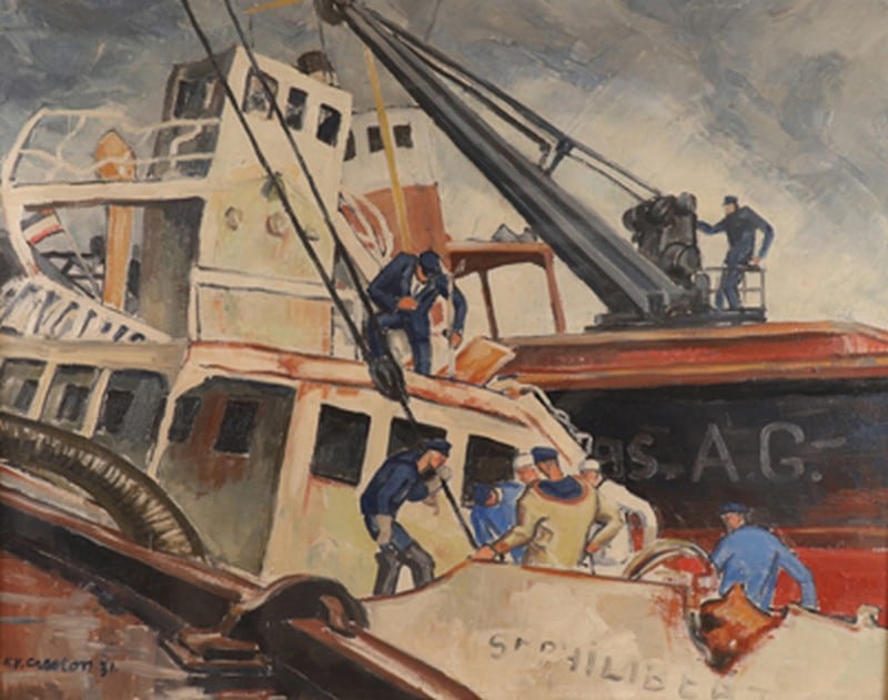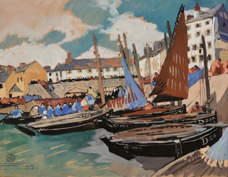 De René-Yves Creston (1898 1964) il faut signaler Les marins du Saint-Philibert daté de 1931(estimation de 4 à 6000 €) une toile qui rappelle le naufrage de ce bateau au large de Préfailles le 14 juin 1931 et qui fit plus de 400 victimes. Plusieurs aquarelles et gouaches du même artiste sont proposées de 300 à 600€.