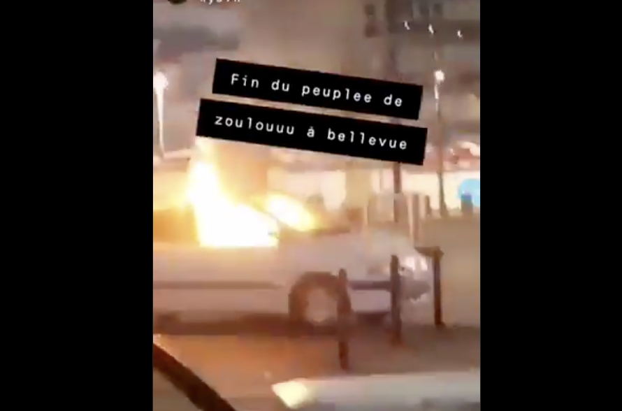 « Après avoir suscité la curiosité des habitants du quartier de l’immigration, comme relaté très naïvement par la presse, le vieux Renault Scénic, “transpercé par un arbre”, pourtant gardé par un agent de sécurité, chassé, fut brûlé par un jeune d’origine africaine filmé par ses petits camarades, au cri de “Plus personne ne viendra à Bellevue !” », explique le RN dans un communiqué.