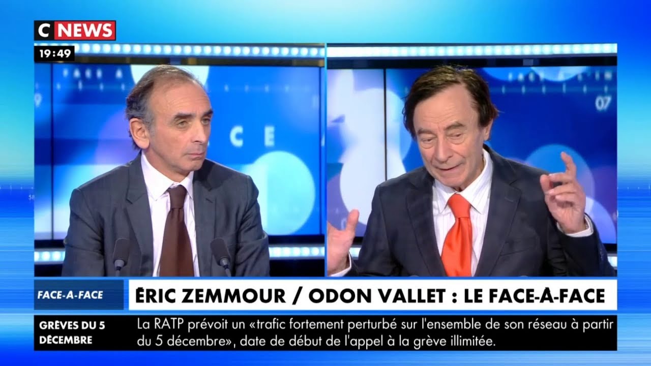 Eric Zemmour face à Odon Vallet sur le pape François, le catholicisme…2ème partie de l’émission « Face à l’Info » du 28 novembre 2019.
