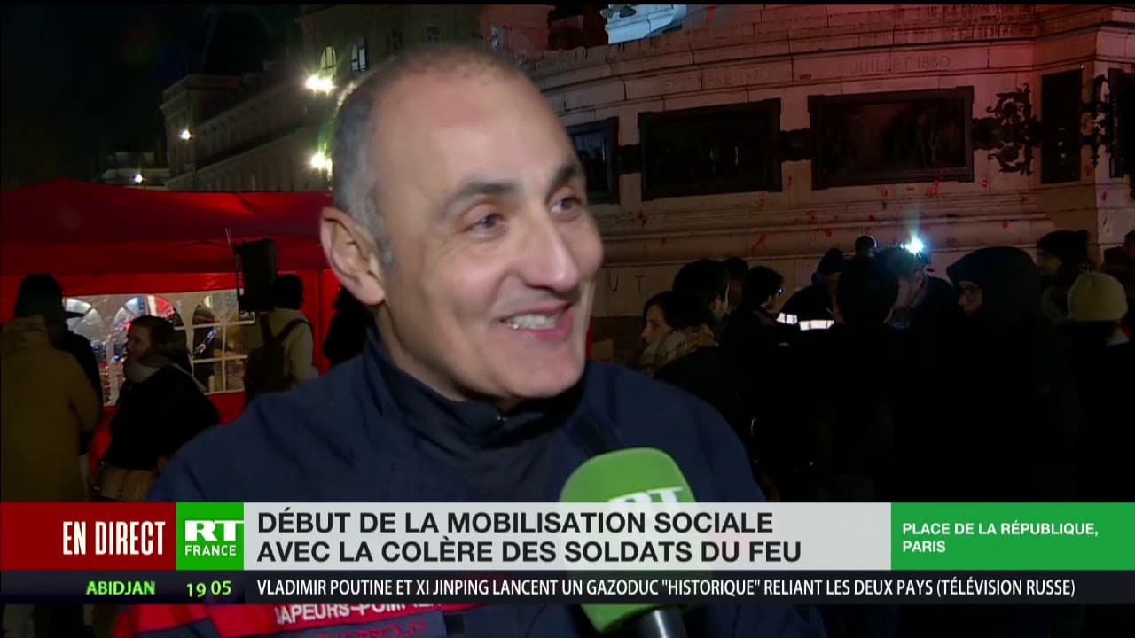 Le syndicat de sapeurs-pompiers SUD-SDIS appelle à l’occupation jour et nuit de la Place de la République pour participer à la lutte contre la réforme des retraites mais aussi porter les revendications spécifiques de leur profession. Rémy Chabbouh, pompier délégué SUD, s’est notamment exprimé au micro de RT France sur le but de ce rassemblement.