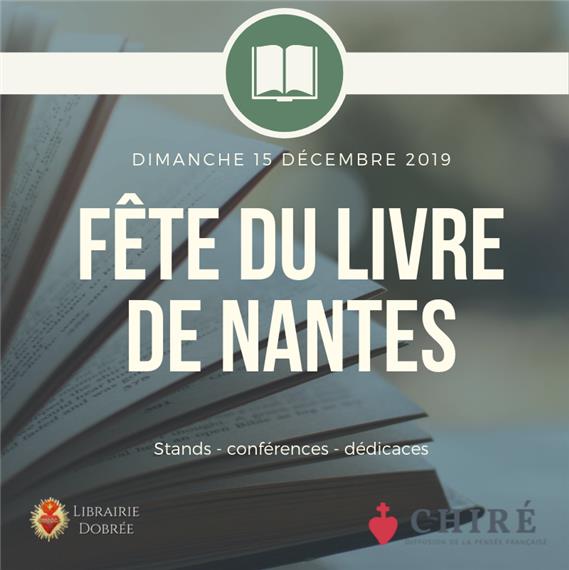 La 7ème fête du livre de Nantes se déroulera le dimanche 15 décembre, organisée par les éditions de Chiré. Trois conférenciers et une trentaine d’auteurs seront présents pour dédicacer leurs ouvrages. Cela se déroulera de 13h30 à 19h30 au château de la Poterie (44240 La Chapelle-sur-Erdre).