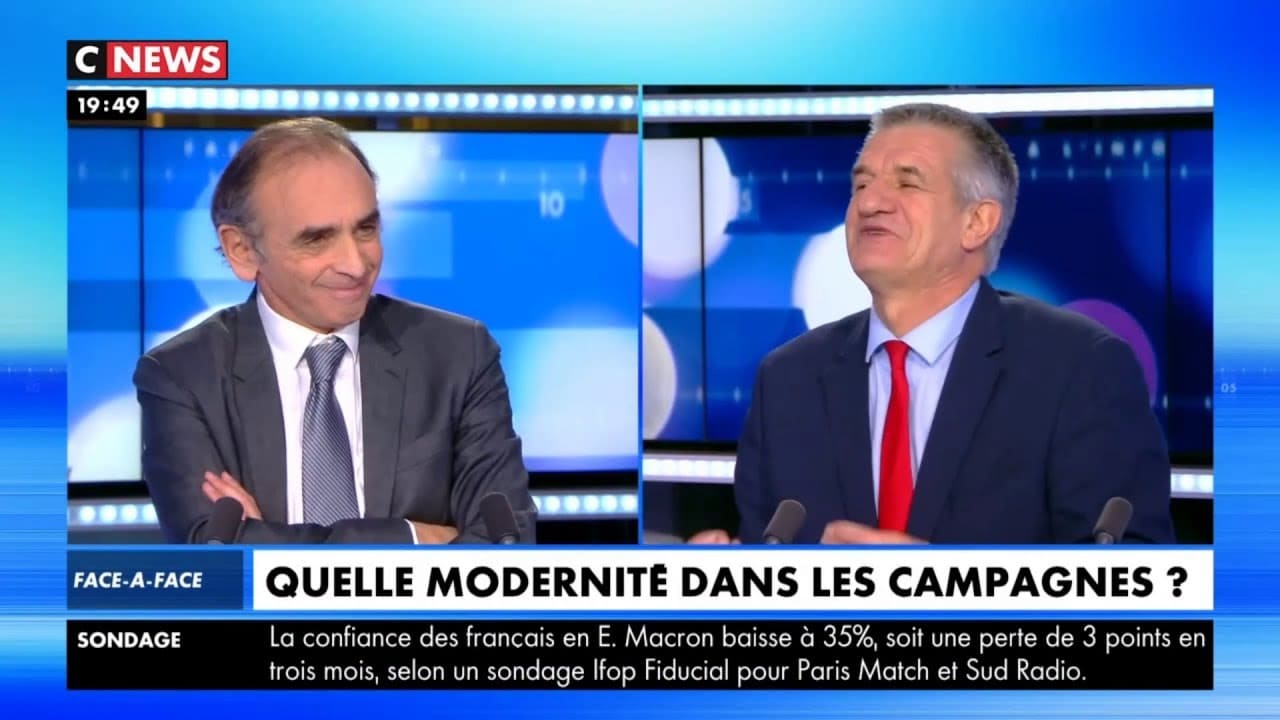 Eric Zemmour face à Jean Lassalle pour la 2ème partie de l’émission « Face à l’info » du 10 décembre 2019.