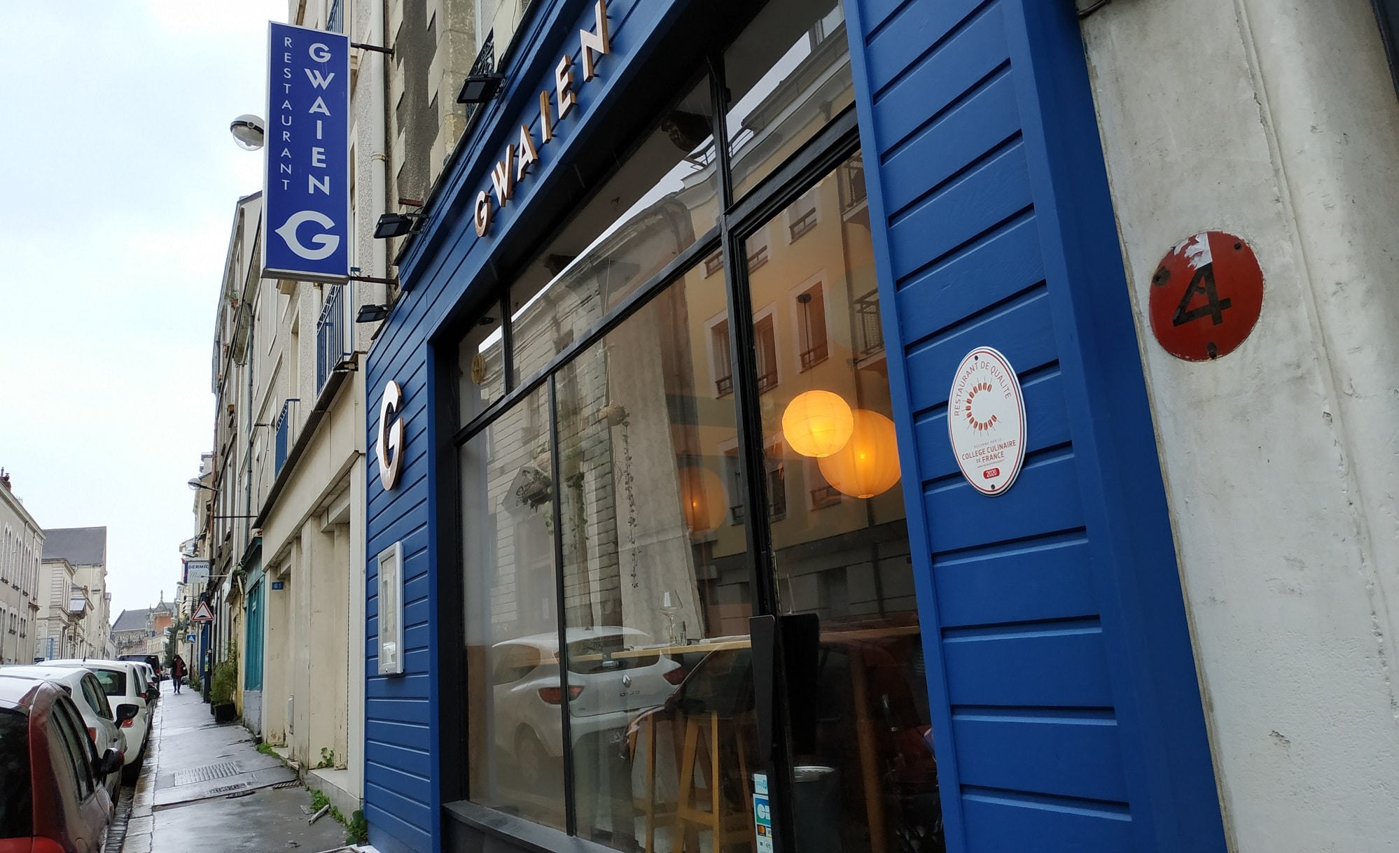 Ouvert en septembre 2019 dans des locaux qui avaient hébergé avant lui l’excellent Lamaccotte, parti depuis vers la rue Saint-Denis, le Gwaien devrait s’affirmer. Il lui faudra renforcer sa singularité, s’écarter des codes « tendance » de notre bonne ville, se revendiquer breton, ce qui est le moins quand on se place sous la protection d’un saint qui n’était pas forcément un petit saint.
