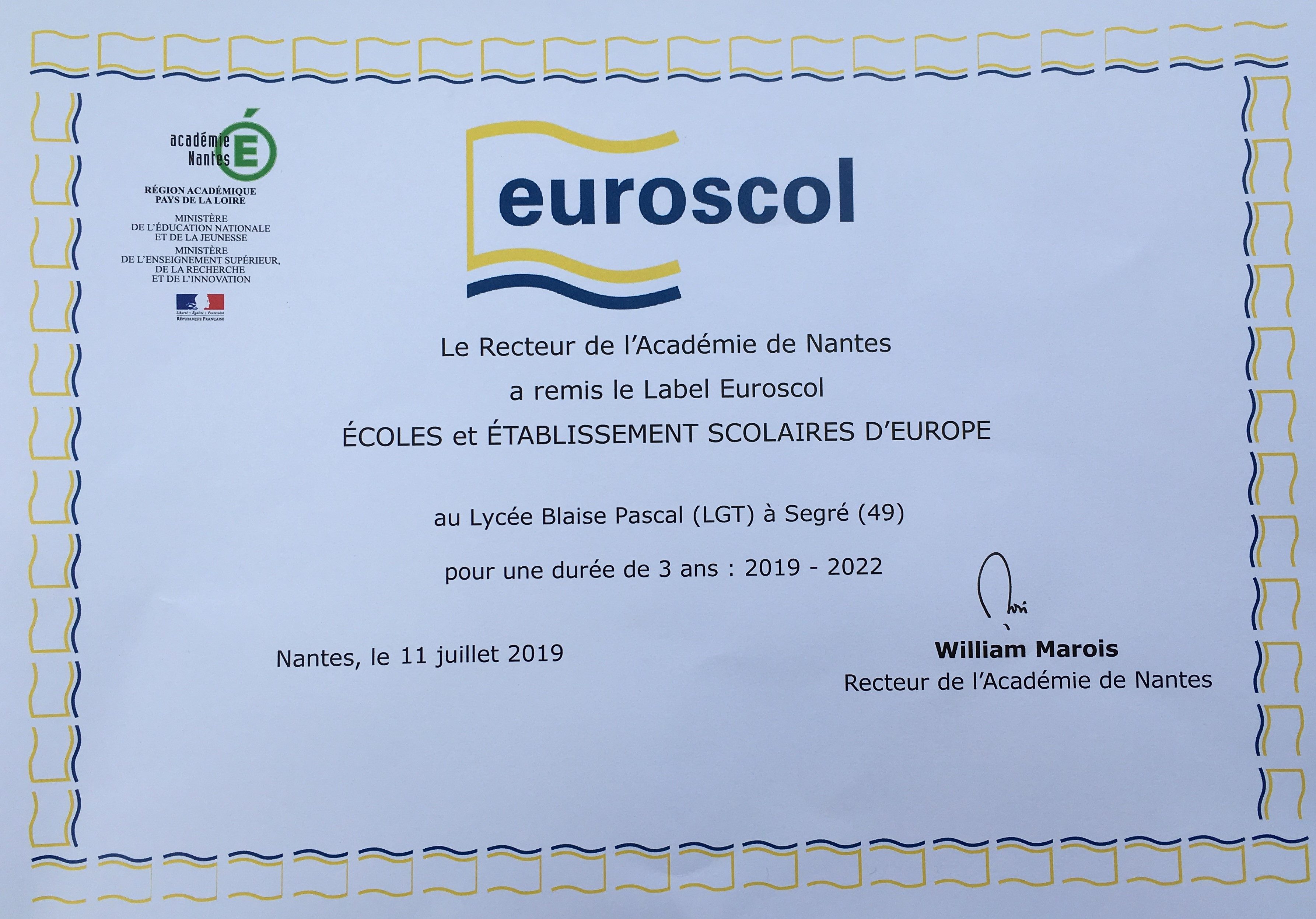En 2019, le Ministère de l’Education Nationale a lancé le label Euroscol pour valoriser les établissements scolaires à dimension européenne. Pour recevoir ce label, les établissements doivent proposer des enseignements plurilingues et des activités pédagogiques sur des thèmes européens, permettre la mobilité des élèves et des enseignants et entretenir des partenariats avec des établissements européens.