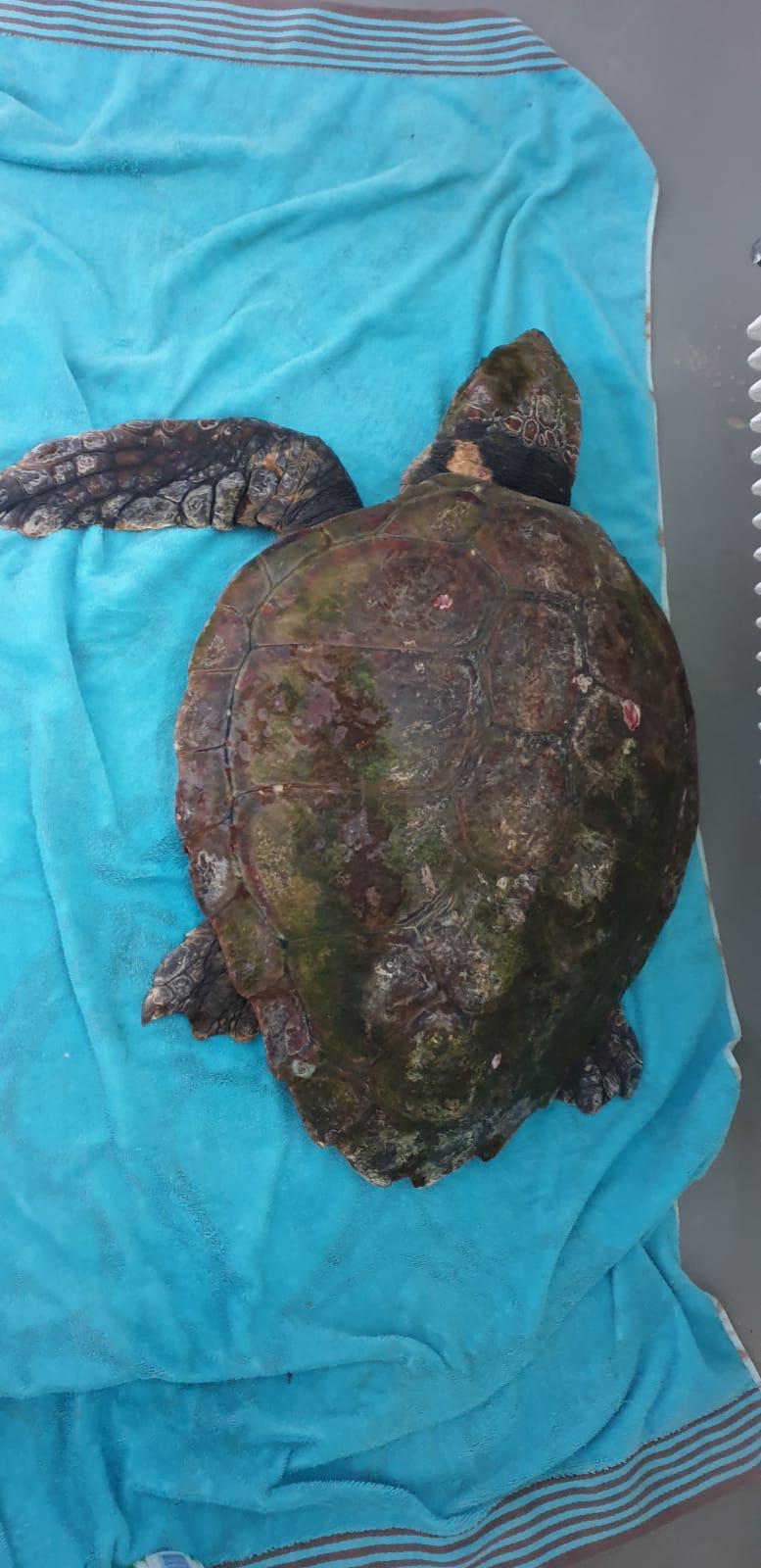 Samedi 15 février, des promeneurs bravant la tempête découvraient sur une plage de Sarzeau – Morbihan – une tortue marine en bien mauvaise posture. En effet, cette dernière handicapée d’une patte avant éprouvait toutes les difficultés à s’extraire du ressac et de la houle.