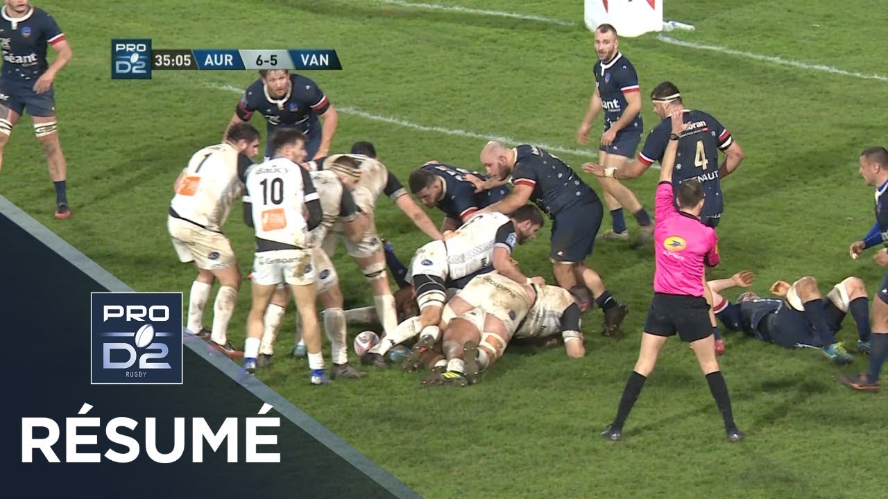 Carton jaune. Vannes : Le Bail (30’), Civetta (35’), Curtis (40’), Hickes (65’) ; Aurillac : Adendorff (36’).