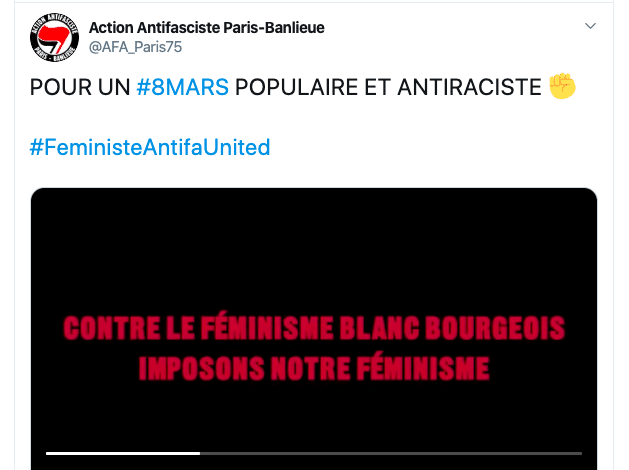 Une marche racialiste aussi puisque ses organisateurs indiquaient : « contre le féminisme blanc bourgeois, imposons notre féminisme ».