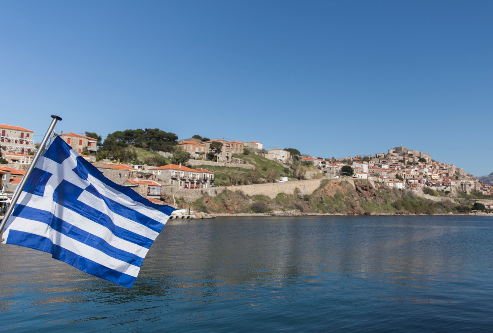 Comme chaque dimanche, Dimitrios se rend au port de Mytilène, au pied de la statue d’un héros local exécuté par les Allemands. C’est l’heure de la descente du drapeau grec, monté chaque dimanche matin en haut du mât et redescendu le soir par les militaires en garnison sur l’île.
