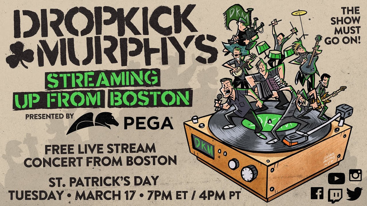 Salut tout le monde ! Nous espérons que vous et vos proches vont bien en cette période… Pour la première fois en 24 ans, nous n’allons pas jouer pour le week-end de la Saint-Patrick. La situation actuelle dans le monde est la SEULE chose qui aurait pu nous empêcher de le faire… Donc nous avons eu l’idée de faire ça ce mardi, le soir de la Saint-Patrick. Nous allons donner un concert de Dropkick Muphys en streaming pour tout le monde, où que vous soyez !