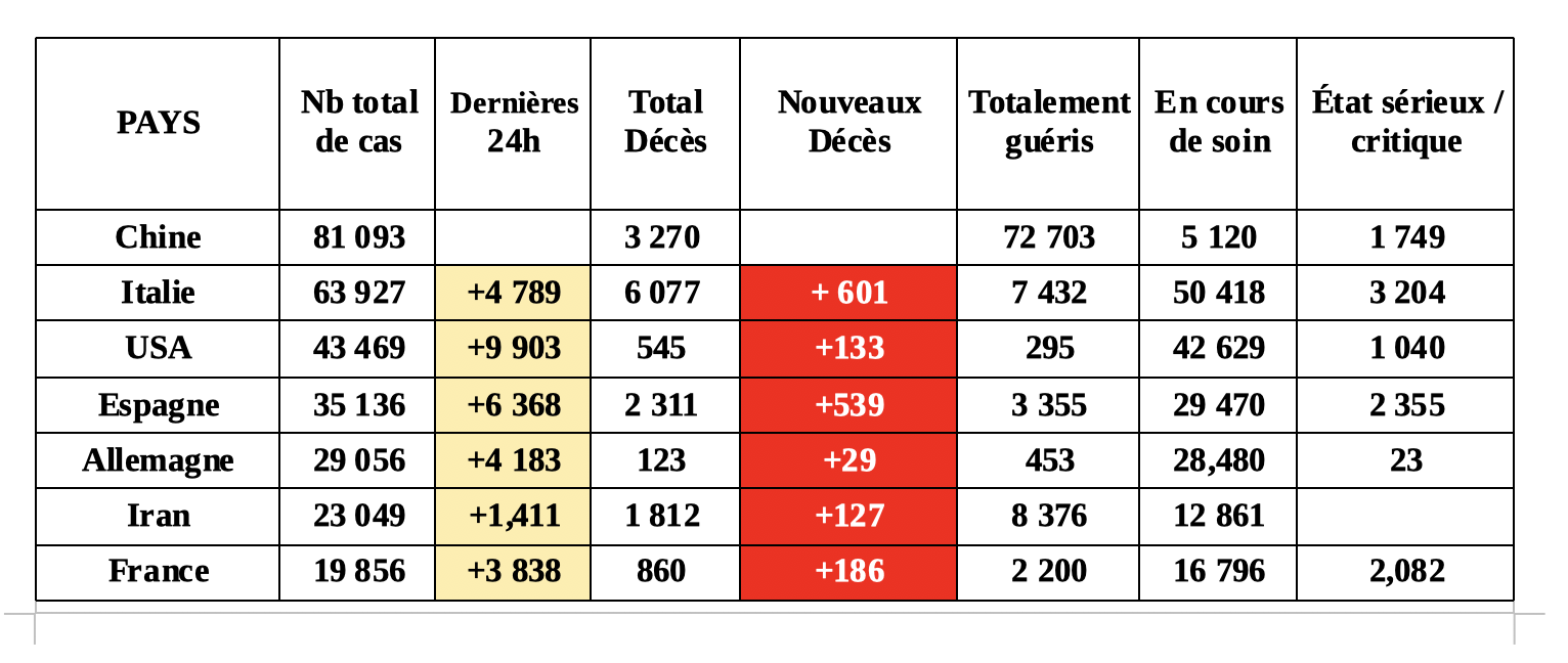 Une réponse à “Covid-19. La situation au 24 mars : la pandémie flambe aux Etats-Unis”