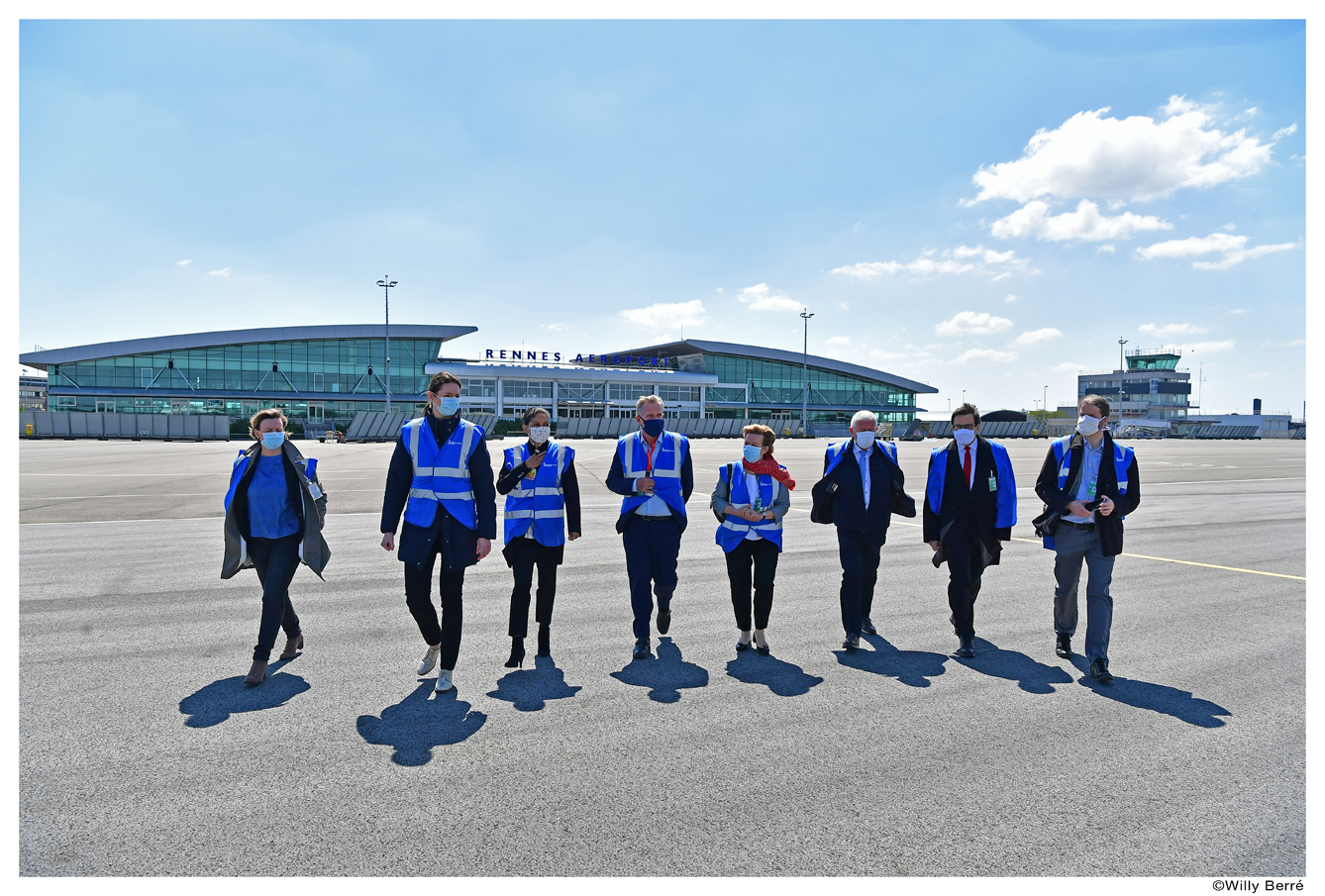 En parallèle de cette situation tourmentée, l’aéroport de Rennes Bretagne, propriété de la Région Bretagne et exploité par la SEARD – dont les actionnaires sont la CCI Ille-et-Vilaine (51 %) et VINCI Airports (49 %), a vu s’achever les travaux de rénovation de la piste principale le 7 mai dernier. Le 15 mai, quelques personnalités, peu nombreuses confinement oblige, se sont déplacées pour marquer la reprise de l’activité aérienne. Étaient notamment présents la préfète de la Région Bretagne Michèle Kirry et le vice-président en charge des transports de la Région Bretagne Gérard Lahellec.