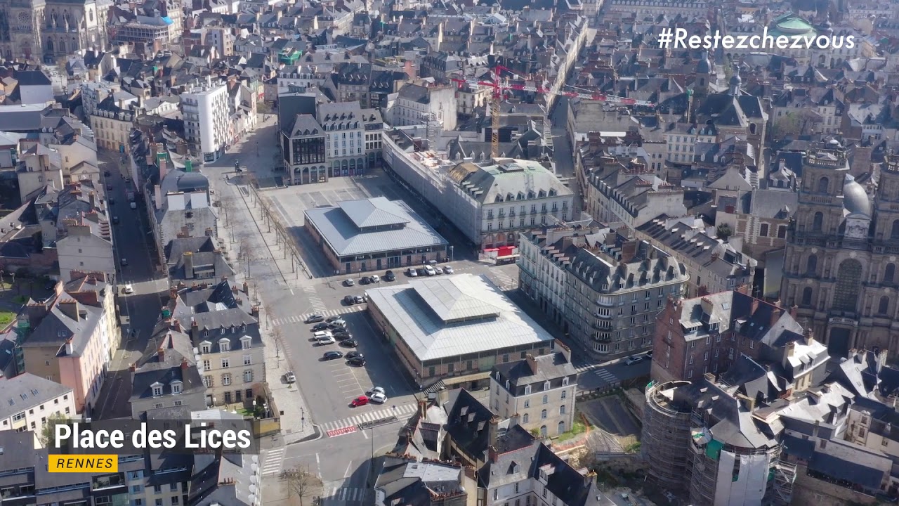 Survol du centre-ville de Rennes en drone.
