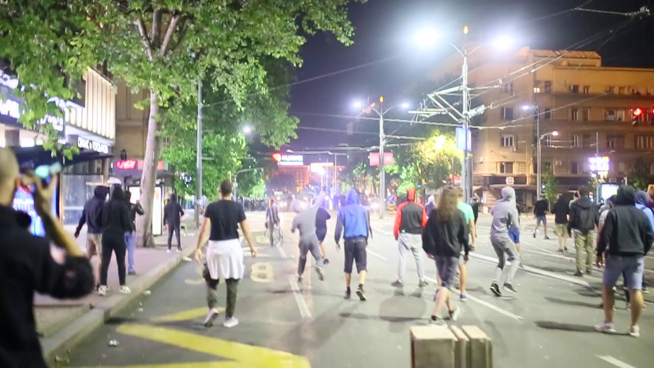 Les manifestants ont répondu en lançant des fusées éclairantes, des pierres, des bouteilles et des œufs sur la police. Plusieurs affrontements ont éclaté entre la frange dure des protestataires et les forces de l’ordre serbes.