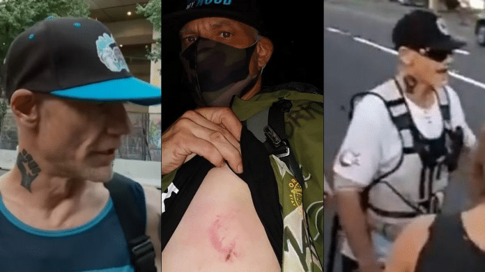 Il affirme également avoir été touché par une balle en caoutchouc alors qu’il s’occupait de la «sécurité» lors de manifestations, et a récemment publié une vidéo d’un drapeau brûlé par une foule scandant «F – k Trump».