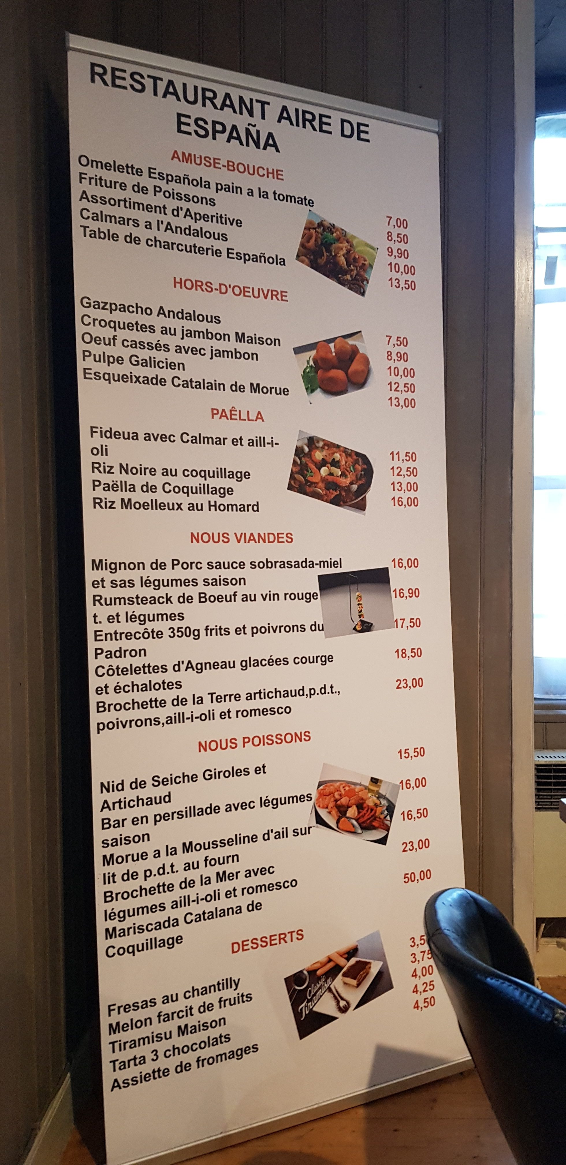On sent l’effort déployé par ces nouveaux venus pour s’adapter à leur environnement rustique en proposant ce que tous les voyageurs savent faire : la cuisine de leur pays d’origine. De là une carte, ou plutôt son absence, remplacée par un long panneau qui liste les principaux plats au menu dont l’orthographe un peu fantaisiste révèle une copie crachée sur un coin de table, le dictionnaire français-espagnol grand ouvert.