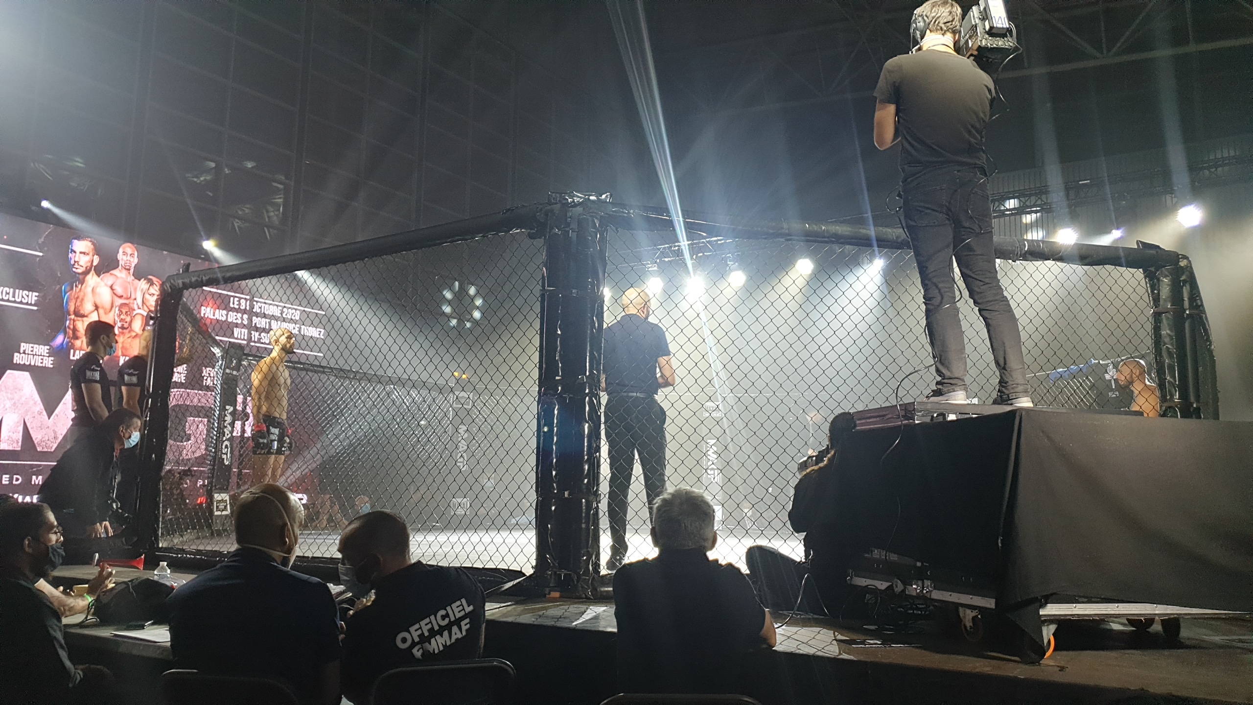 L’organisation est encore perfectible mais on rentre sans embûches dans la salle. On croise ici et là quelques spectateurs pratiquants des sports de combats. Nous avons ainsi croisé un boxeur d’une trentaine d’année qui confie sa « joie d’assister enfin à du MMA en France, après en avoir regardé des années à la télévision ».