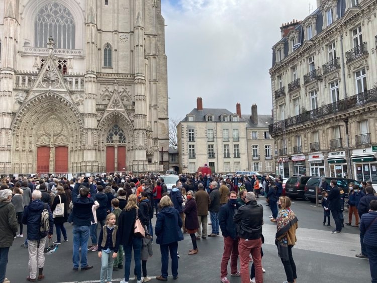 Fidèles de toutes les paroisses du diocèse de Nantes, tous ont répondu à l’appel à la mobilisation qui circulait sur Facebook depuis quelques jours. Ce rassemblement fait suite à la décision du Gouvernement, prise à l’approche de la fête de la Toussaint, de leur interdire toute assistance à la moindre cérémonie, encore moins à la Messe.